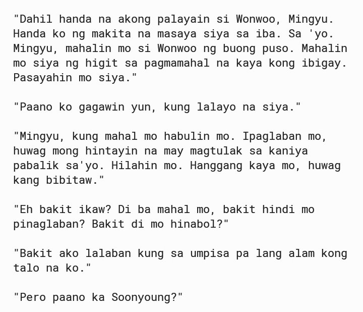 Alam ko naman na darating ang panahon na puso ko mismo ang susuko. Gagawan ka ng PHN. Walang sinuman ang maaaring humadlang a sa mga karapatang ito sapagkat itoy paglabag sa Konstitusyon natin.