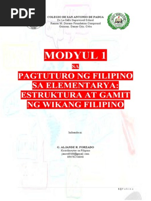Modyul 1 Sa Pagtuturo Ng Filipino Sa Elementarya New Pdf